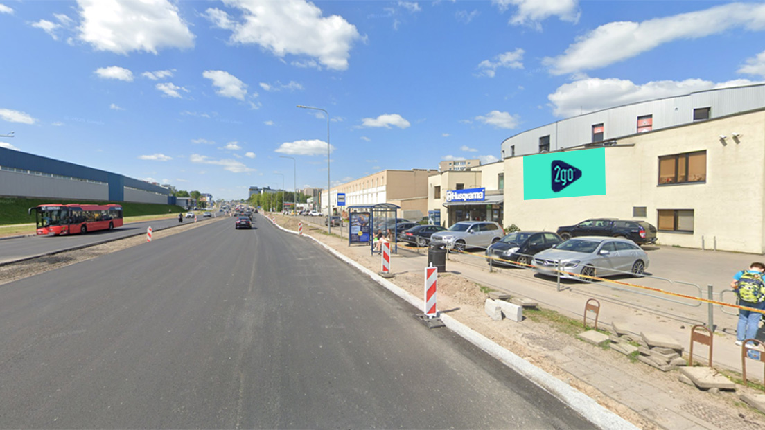 Reklama ekrane matoma vykstantiems link Vilniaus vakarinio aplinkkelio ir, žinoma, užsukusiems į parduotuves, įsikūrusias pastate, ant kurio sienos yra lauko ekranas. Aplink įsikūrę įvairios parduotuvės, tokios kaip „Muresta“, „Lidl“, „Norfa“, „Celsis“ ir kt. Lauko ekranas taip pat yra pakeliui į prekybos centrą „Depo“, prekybos ir laisvalaikio centrą „BIG“ bei Ukmergės gatvės pabaigoje įsikūrusius verslo centrų kompleksus.
